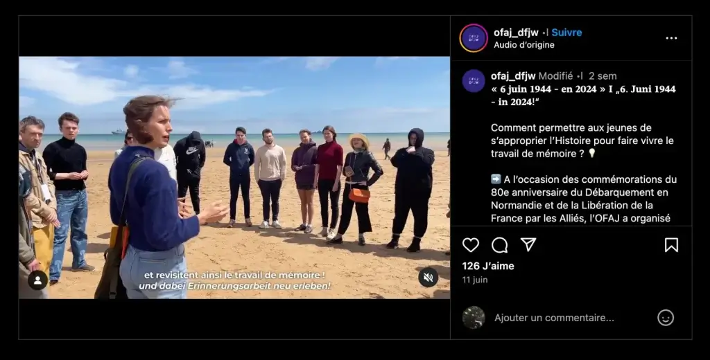 En partenariat avec l’Office franco-allemand pour la Jeunesse (OFAJ), nous avons participé à la commémoration du Débarquement de Normandie le 6 juin. Cet événement a permis aux jeunes de réfléchir de manière critique sur l’histoire et la mémoire collective.